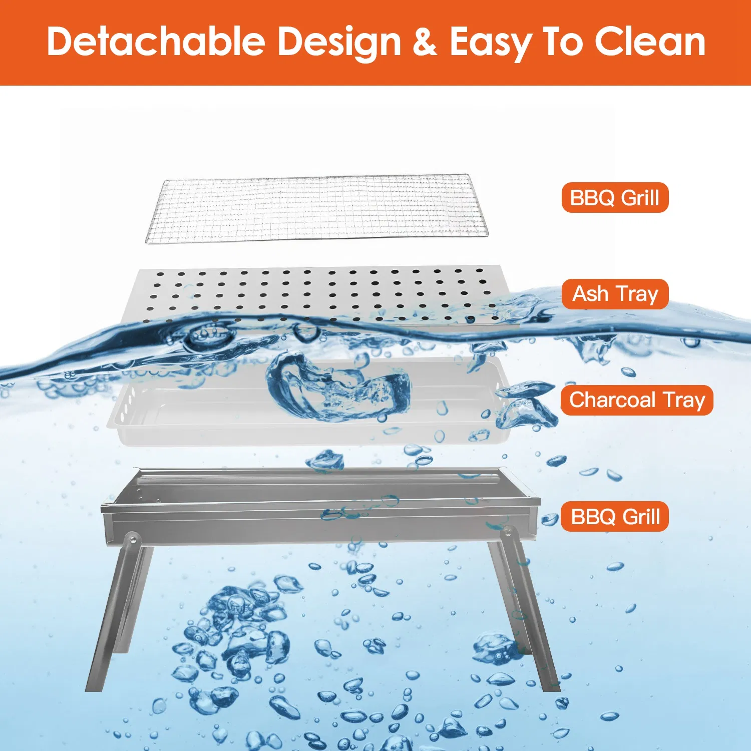 Portable & Foldable Grill: With the folding flat piece size of 23.03x8.85x2.55in, this 4.08lbs lightweight and portable charcoal BBQ grill is convenient for carrying and transporting. Ideal for both on the go as well as for patio or backyard cooking.
