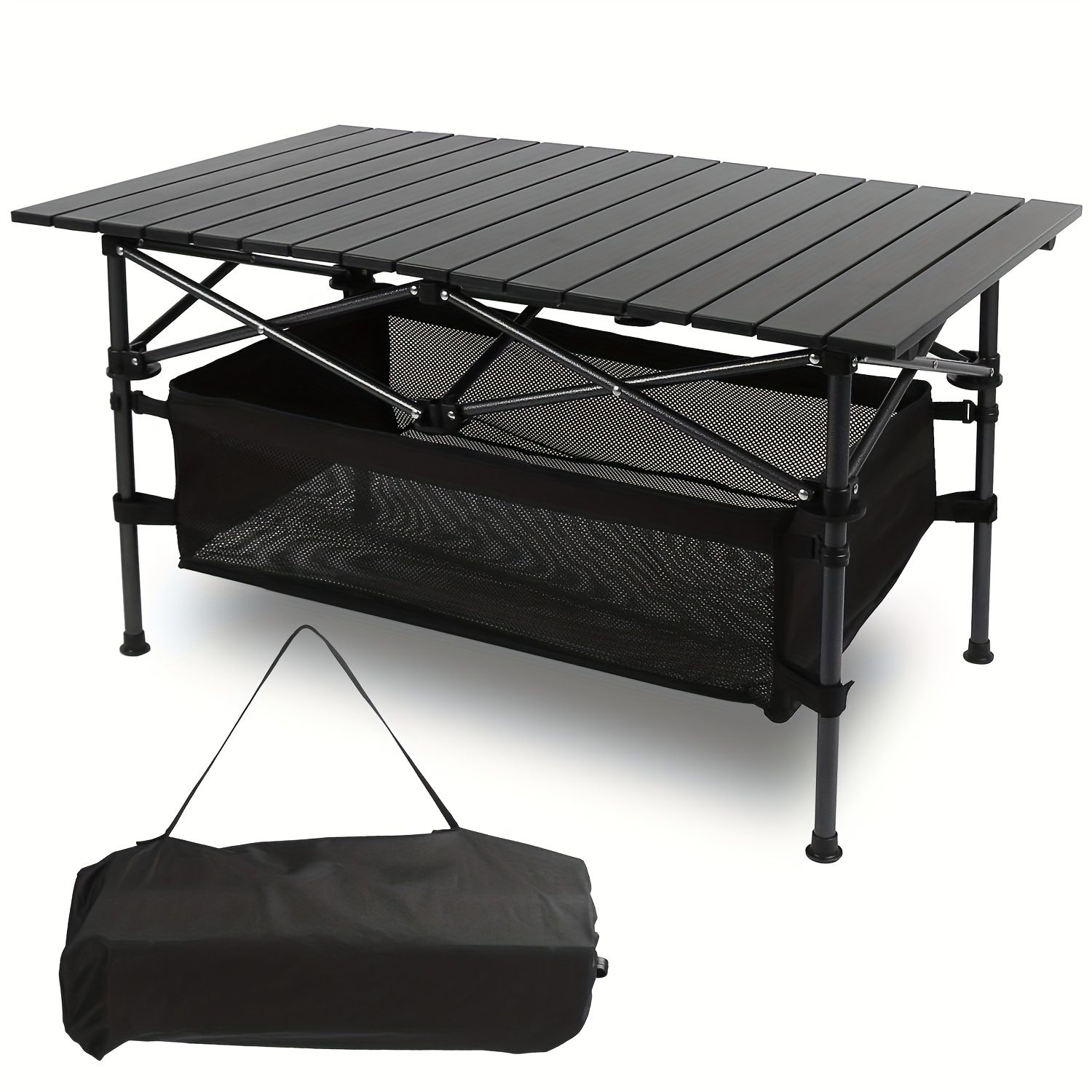Lightweight and Portable Design: This camping table is made of lightweight aluminum, allowing for effortless transportation. It folds up neatly and comes with an easy-carrying bag, making it perfect for various outdoor activities such as camping, backyard BBQs, beach outings, and picnics. You can take it anywhere without adding much burden. For example, it's a breeze to carry it on a hiking trip or to a campsite by the river.Versatile Usage: Whether you're hosting a party on your patio, enjoying a picnic in the park, or having a barbecue in your backyard, this folding table is your reliable companion. It's also suitable for indoor use, providing an extra surface for your needs. Imagine using it to set up your snacks during a movie night at home or as a workspace in your study.Sturdy and Durable Construction: Crafted from high-quality aluminum, this roll-up table is built to last. It can withstand the rigors of outdoor environments and frequent use. The stable structure ensures that it won't wobble or collapse, giving you a secure surface for placing your items. Even when exposed to different weather conditions, it maintains its integrity.Medium Size for Convenience: The medium-sized design of this table offers just the right amount of space for your essentials. It's large enough to hold your food, drinks, and utensils during a picnic, yet compact enough to fit easily in your car or storage area. You'll find it to be the ideal size for both small and medium-sized gatherings.Easy to Set Up and Fold: Setting up and folding this table is a breeze. With its simple and intuitive design, you can have it ready for use in no time. When it's time to pack up, it folds quickly and fits snugly into the carrying bag. Say goodbye to complicated assembly processes and hello to hassle-free convenience.