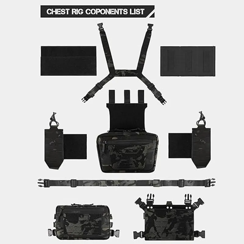 [Adjustable & Detachable]Micro chest rig Max waist:41inches; Easy fits your body figures with adjustable universal H-Strap harness with buckle closure. Every part of the chest rig can be dismantled, You are free to assemble it into your favorite chest rigs.