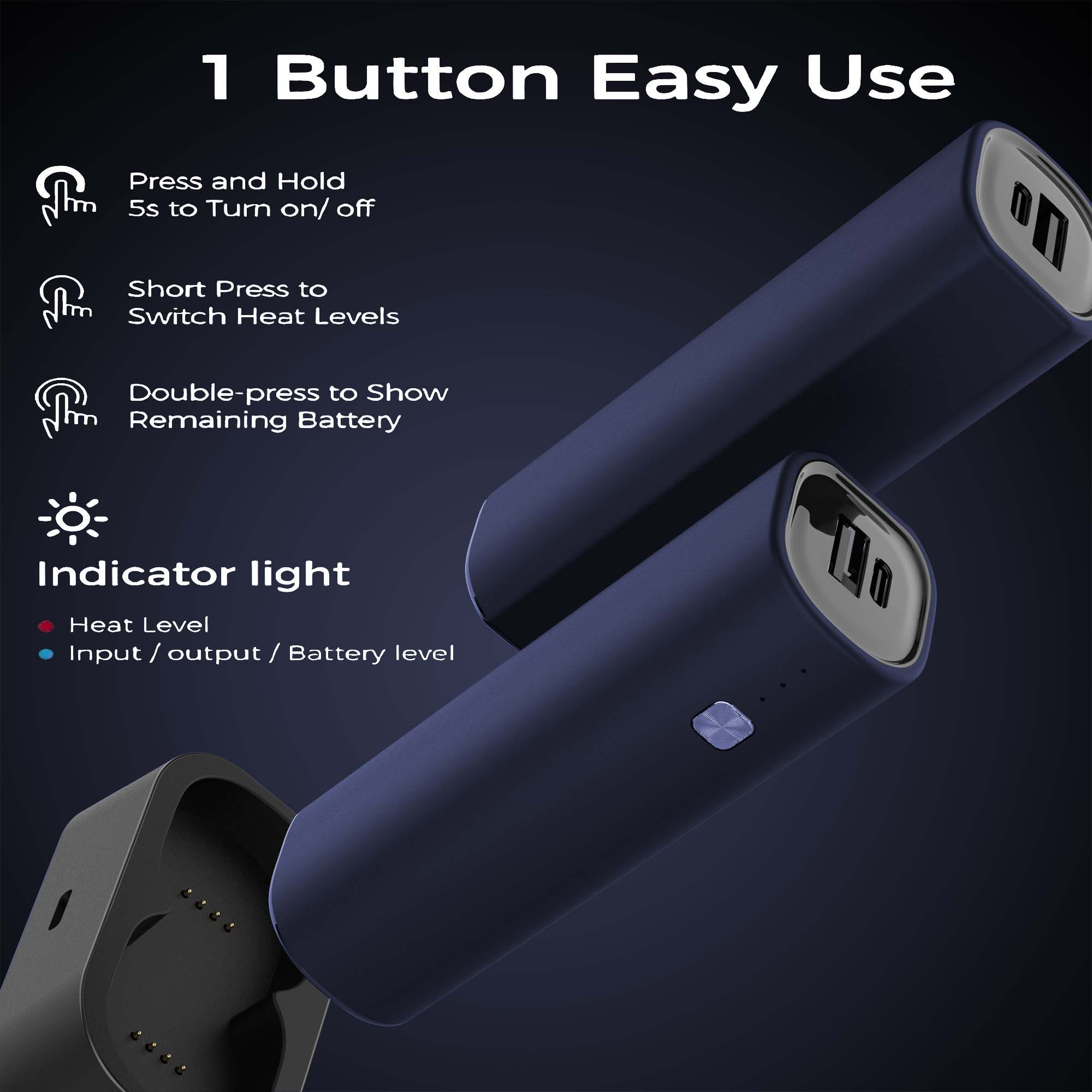 [New Update - Quickly release heat]The power density of has increased by 25% and can generate a large amount of heat in a few seconds.The super durable,smooth,and all-in-one high-quality brushed aluminum shell can improve the insulation effect and evenly distribute heat.The best heating moment.Beautiful and generous.Three heating temperature settings,ranging from comfortable warmth to a high temperature of 13[Portable for Outdoor Sports]You can put the reusable hand warmer in your pocket or carry it with you in a backpack when doing outdoor sports such as fishing, traveling, camping, skiing, cycling, etc.