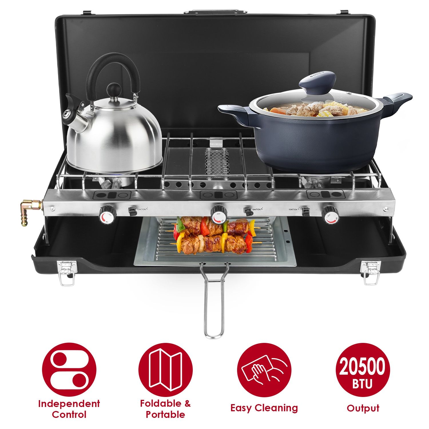 3 Burner Camping Stove 20000 BTU Portable Foldable Propane Stove With Toast Tray Windshield Portable Handle Outdoor Cooking Gas Stove For RV Camping B 3 Burner Camping Stove 20000 BTU Portable Foldable Propane Stove With Toast Tray Windshield Portable Handle Outdoor Cooking Gas Stove For RV Camping B 3 Burner Camping Stove 20000 BTU Portable Foldable Propane Stove With Toast Tray Windshield Portable Handle Outdoor Cooking Gas Stove For RV Camping B