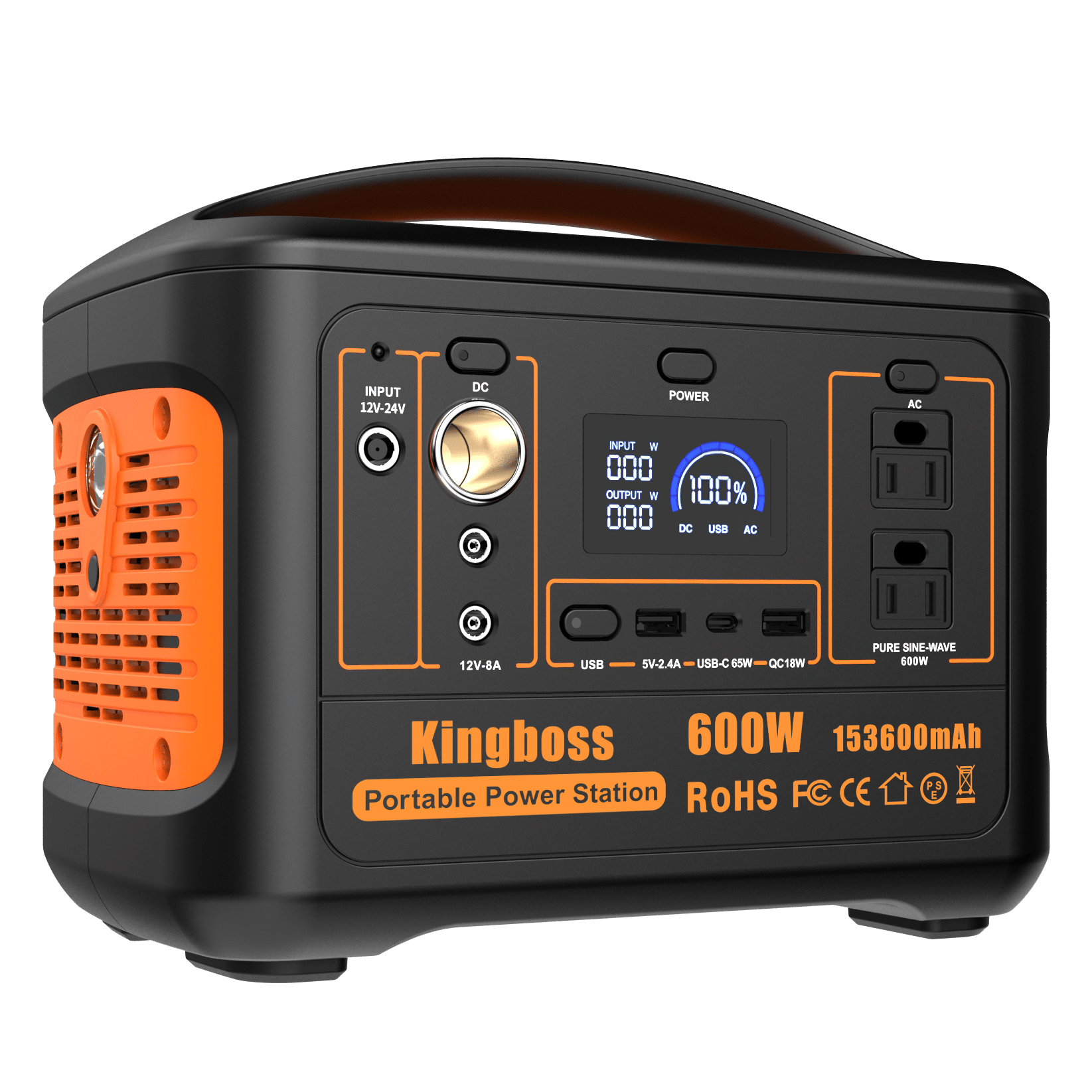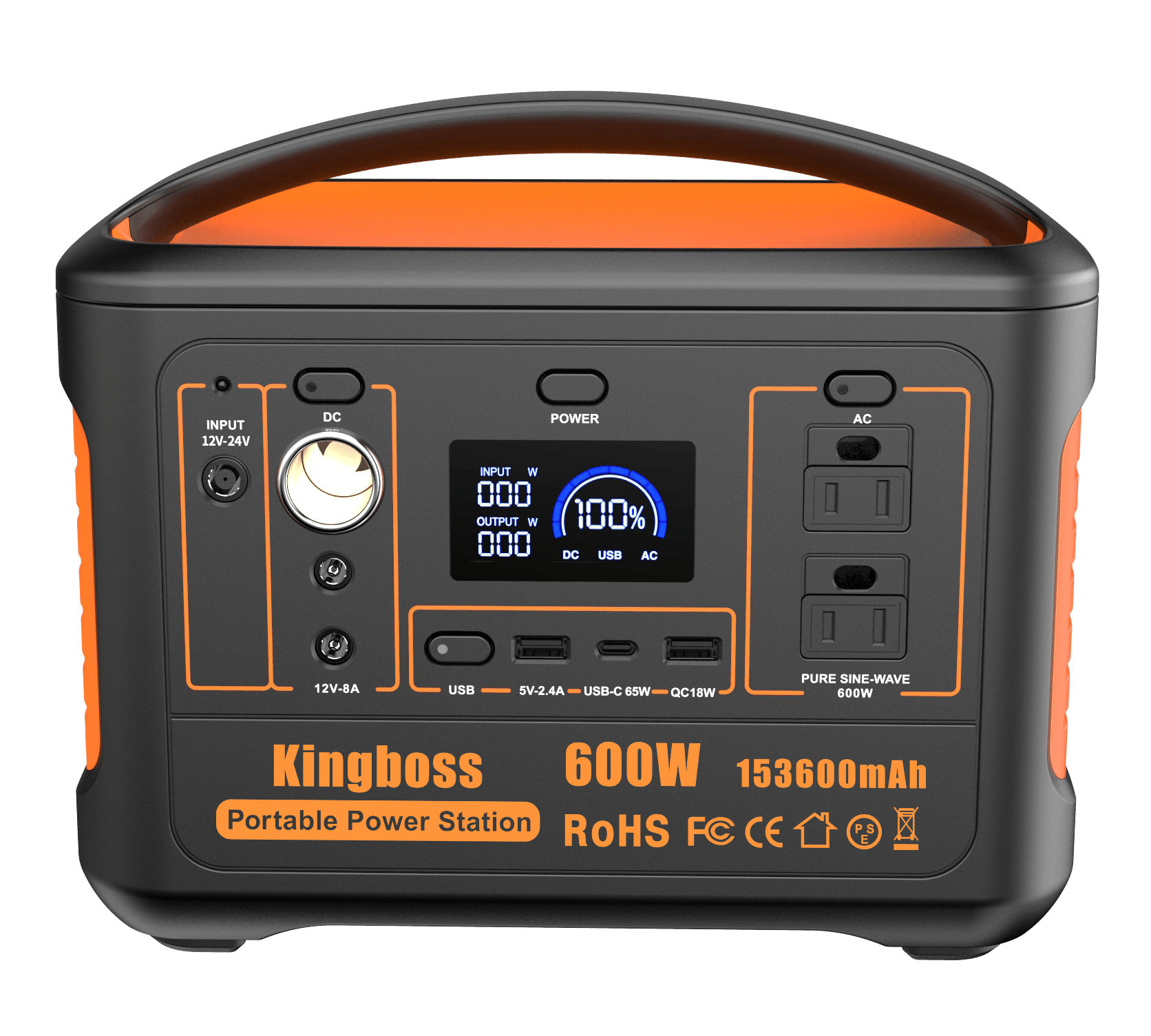 2.Solar Generator, Portable Power Station 600W (Peak 1200W) Kingboss, 153600mAh 568WH, Lithium Battery 110V/600W, AC Outlet, 2*DC Carport, 2*USB-C, QC USB 3.0, Camping Power bank, Outdoor Indoor, RV, Outage