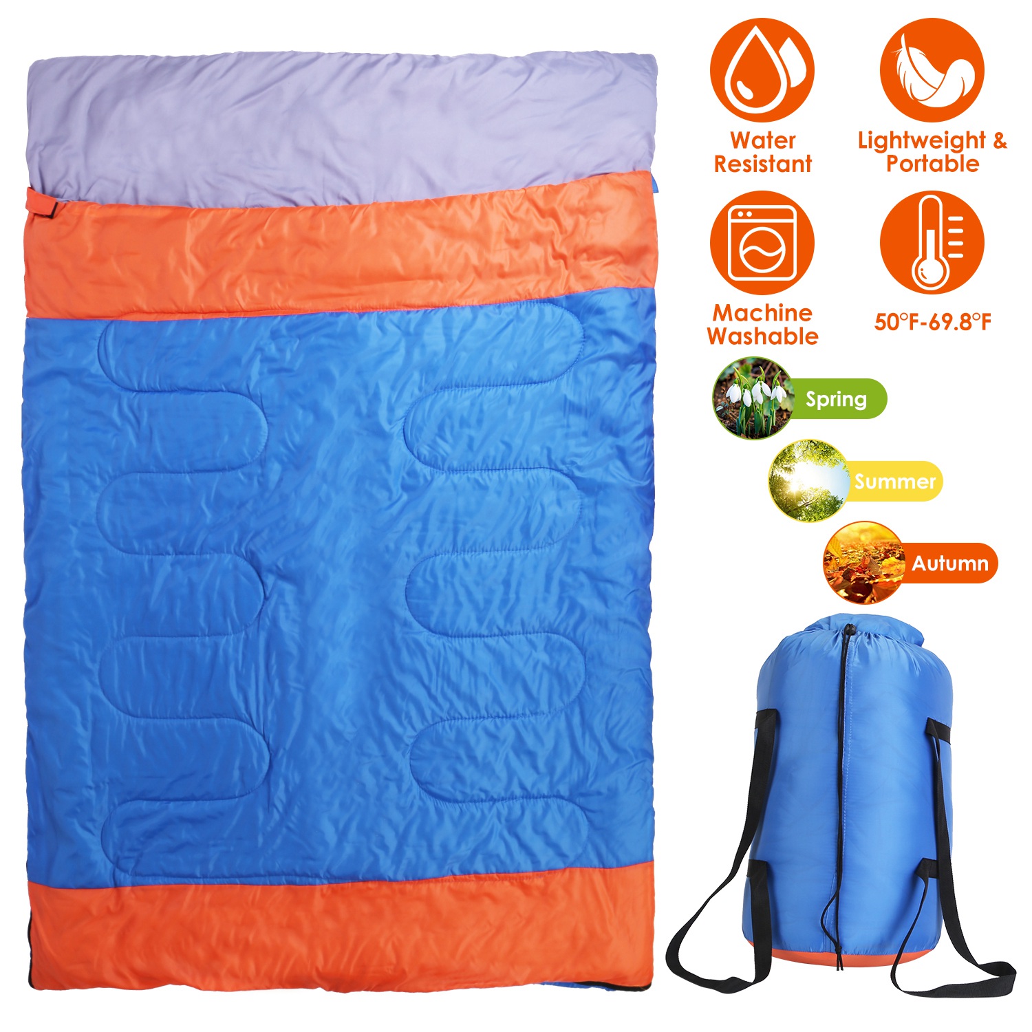 Home > 3 People Sleeping Bag for Adult Kids Lightweight Water Resistant Camping Cotton Liner Cold Warm Weather Indoor Outdoor Use 3 Season with Sack for Spri
